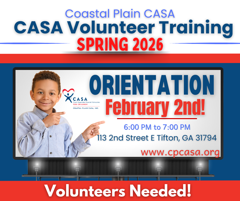 You’ve completed training and passed the required background checks. You’re now sworn in as a CASA volunteer with Coastal Plain CASA and ready to be matched with a child or sibling group and advocate on their behalf.
